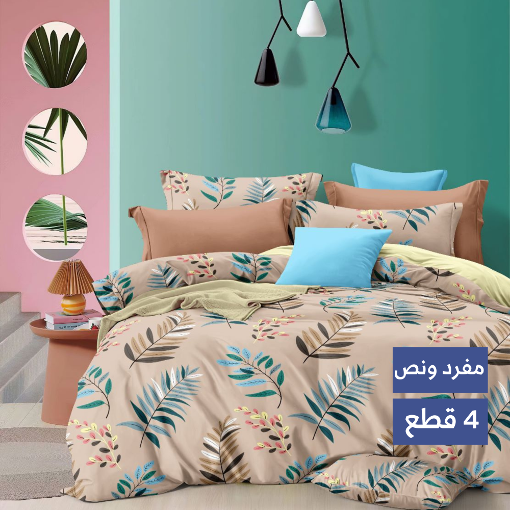 مفرش بلو فيذرس يمتاز بخامة البوليستر عالية الجودة التي ستشعرك بالراحة والنعومة اللازمة من أجل نوم مريح يأتي المفرش بحشوة من البوليستر الممتاز والمريح بـ سمك متوسط مثالي لتخفيف الضغط على الجسد ويمتاز المفرش بتصميمه الحيوي لنوم هانئ وصباح مليء بالنشاط