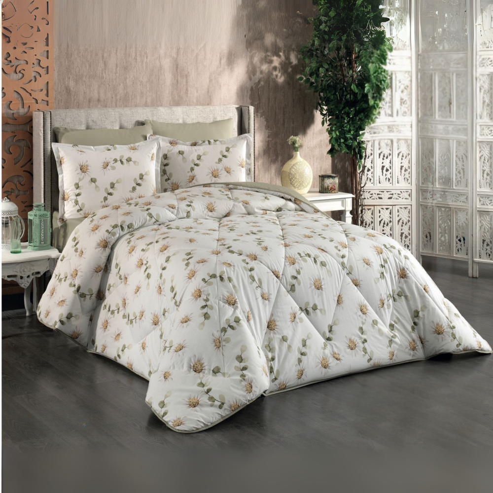 مفرش بينار مصنوع من خامة القطن الناعم، مما يضمن لك نوم عميق و مريح. بحشوة من البوليستر عالي الجودة وتفاصيل أنيقة